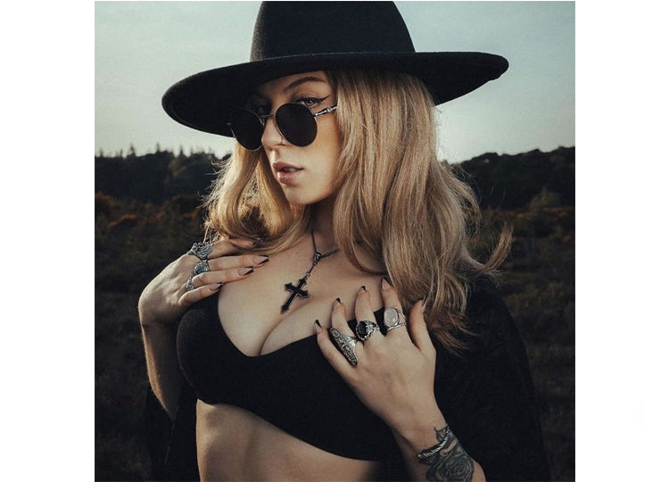 Sign of a Prince of Darkness, in the shape of a pointed cross, Urdy Cross or Cross of Suffering. A classic image with a macabre twist.